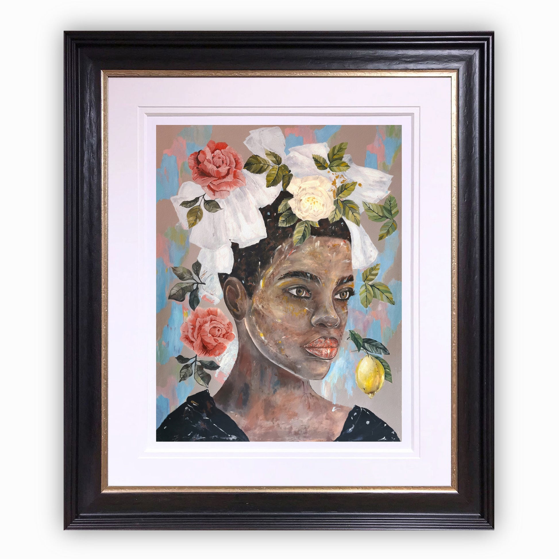 Art-Deco style, Vibrant colors and colonial atmosphere, inspired by floral and dark skinned powerful beauty of Abigail - Mysterious Rose Collection. The colors are bright and vibrant.