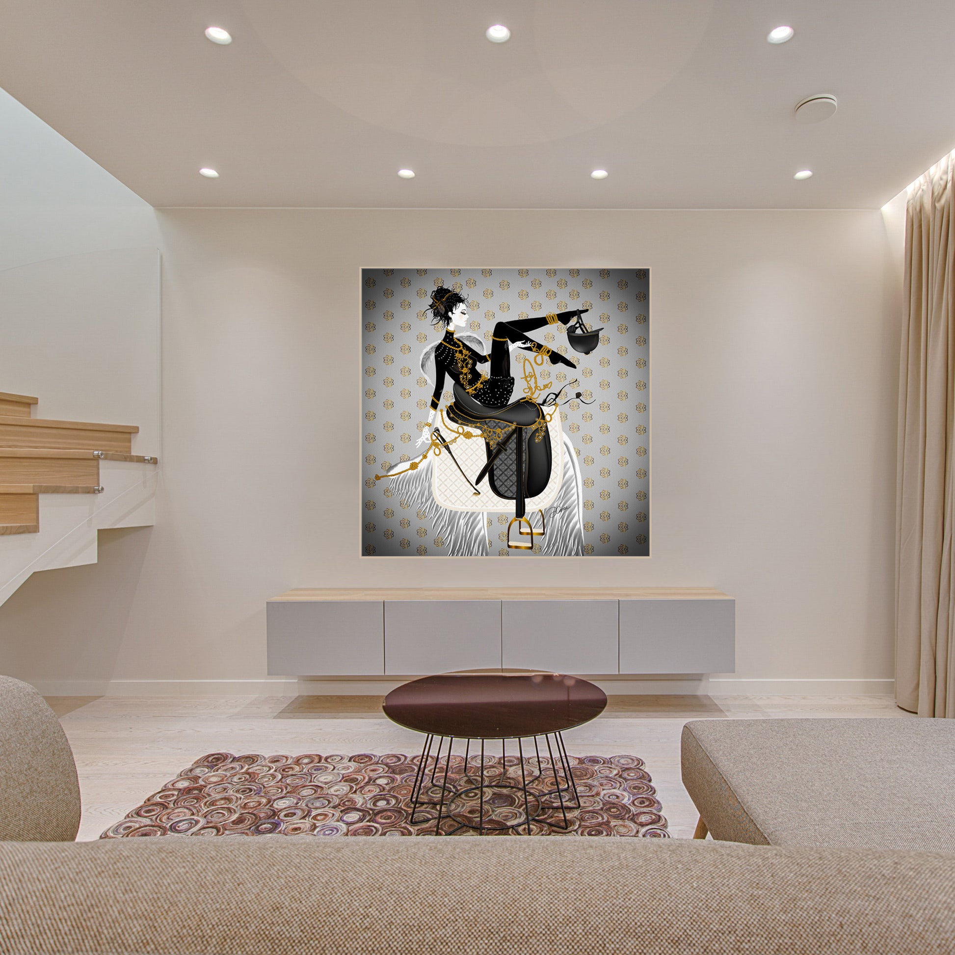 Authentic piece in made with passion and golden embroidery details, hand-painted. An Angel in the Saddle - horse - riding - dressage
