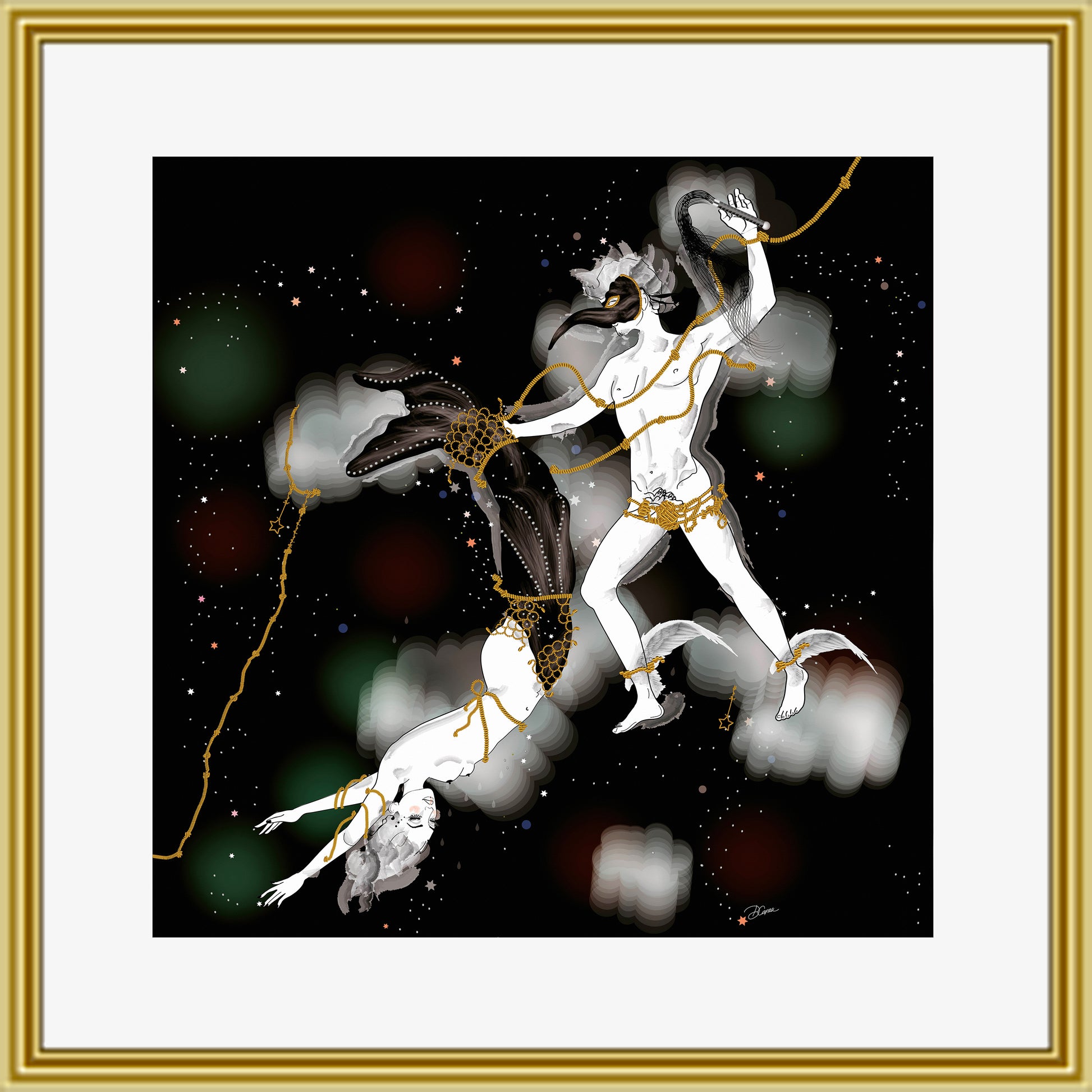 Giclée Art Print of Authentic piece made with passion and golden embroidery details. Playful illustration in bdsm style. The Artprint comes with certificate of authenticity signed by Artemisia.