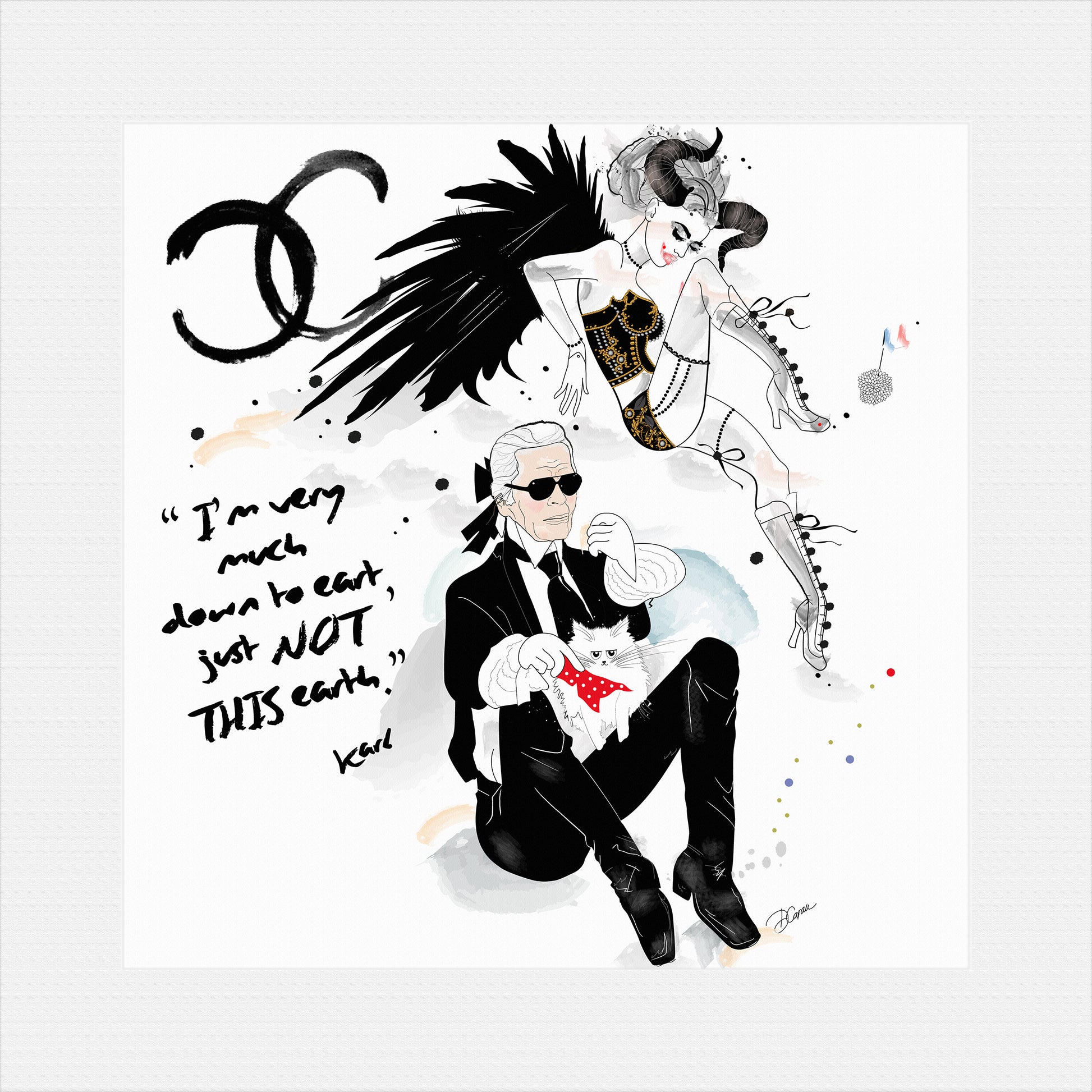 Karl Lagerfeld, the fashion Ikon and as well a huge influence in the Paris fashion scene, creative director of Chanel, the German designer’s unmistakable silhouette - sunglasses, ponytail and high collar in bold black and white, great innovator who’s always looking to the future.