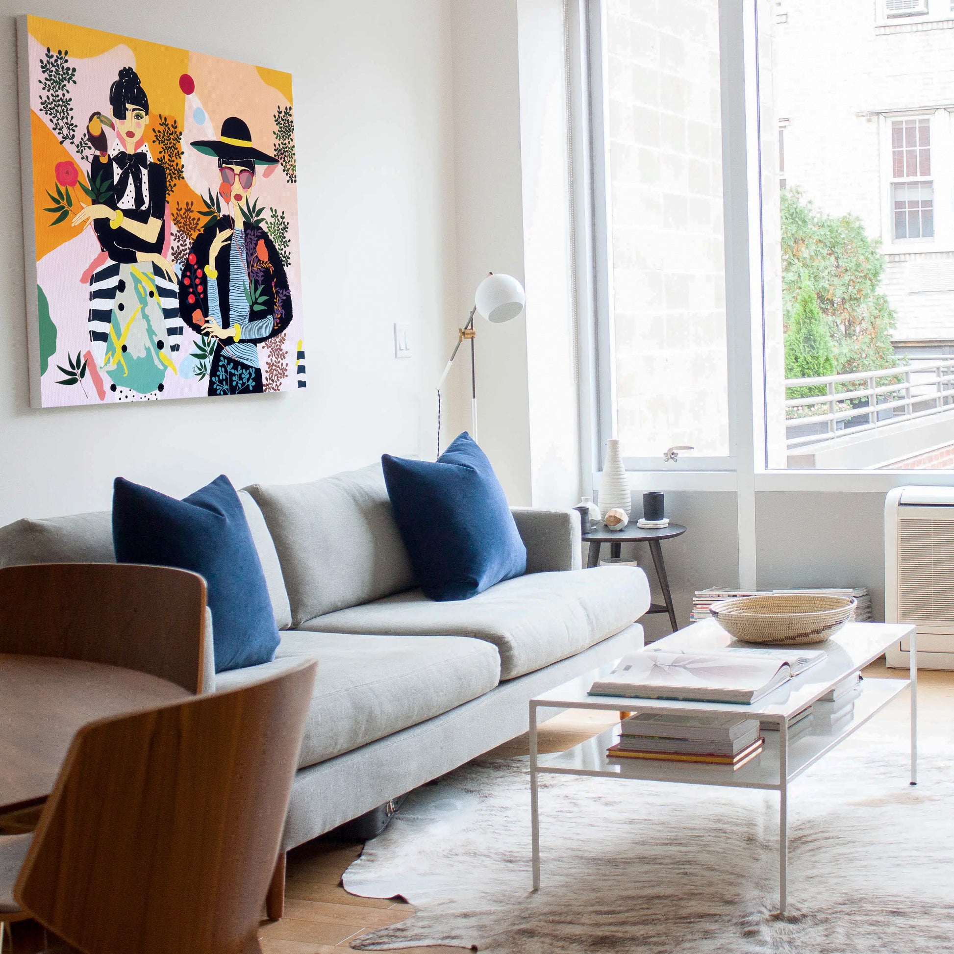 Authentic piece in Art-Deco style, art tailored to bring Fashion and Floral elements to your Living Space. Original artwork in large natural canvas.