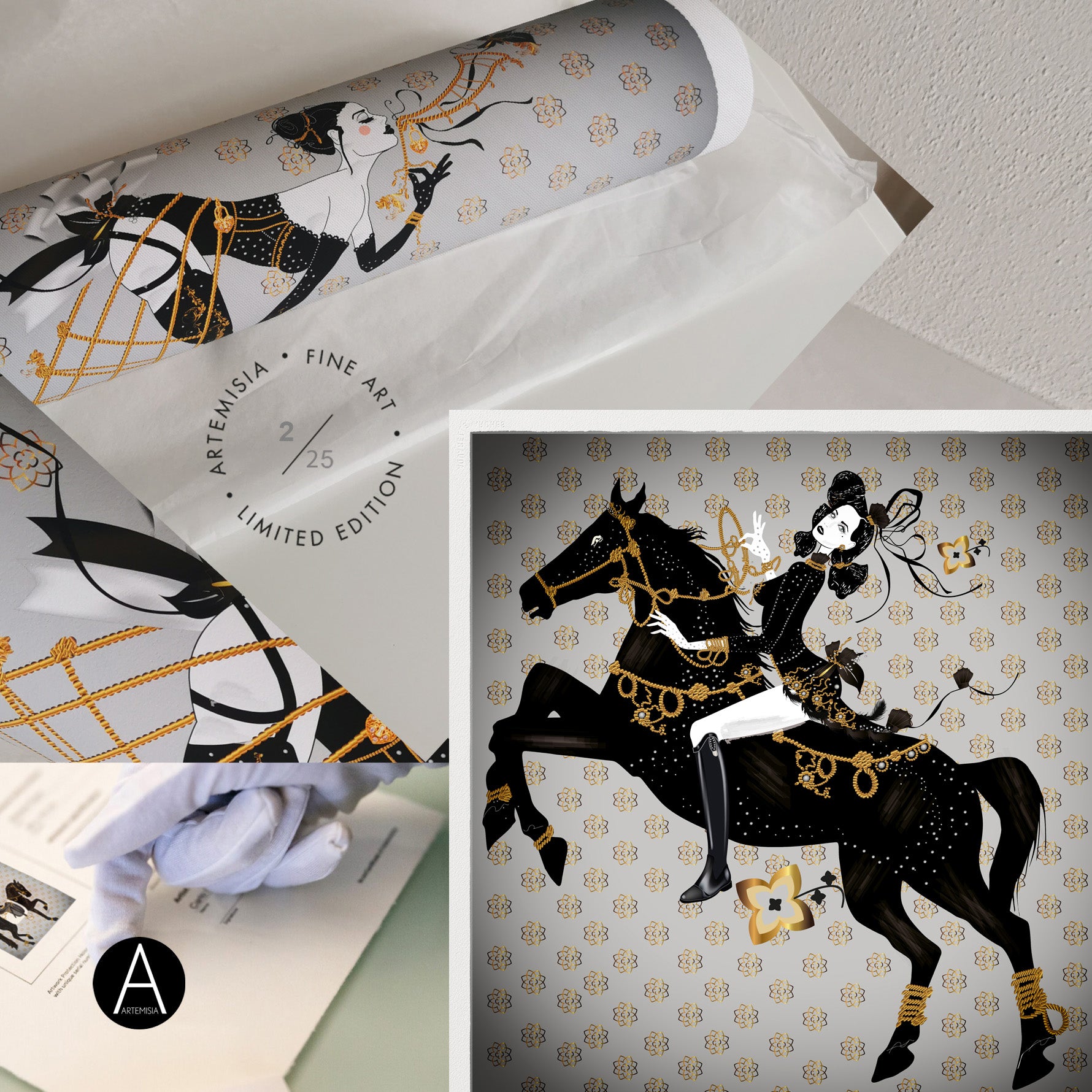 Miss Burlesque - with love, print of original painting. Equestrian Collection - inspired by the free spirit, in constant motion without beginning or end, because that is the nature of life, a never-ending evolution. The colors are bright and vibrant, extreme care about minute details. The perfect gift!