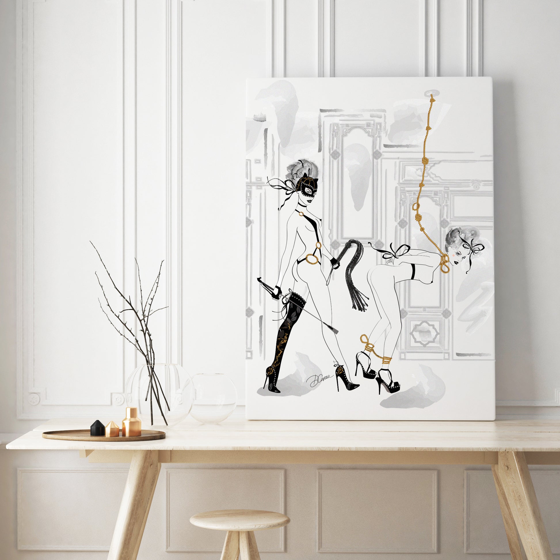 Giclée Art Print of Authentic piece made with passion and golden embroidery details. Playful illustration in bdsm style. The Artprint comes with certificate of authenticity signed by Artemisia.
