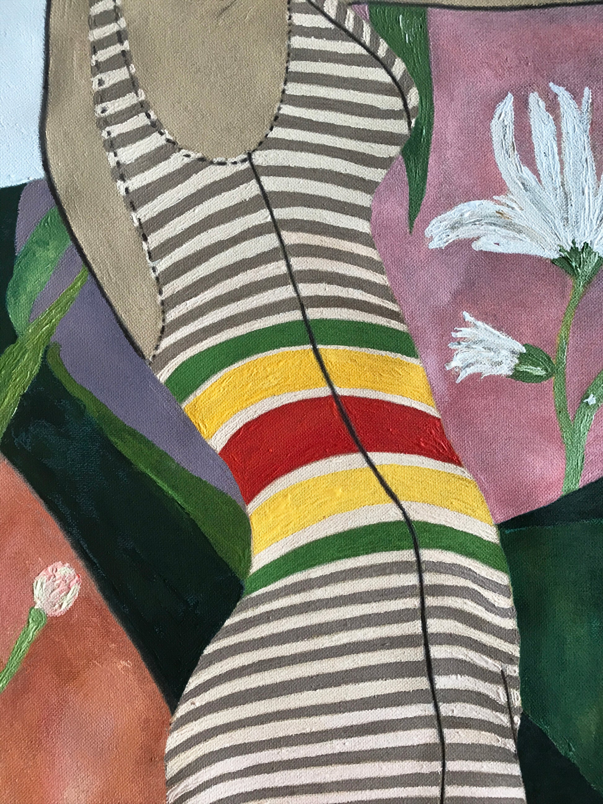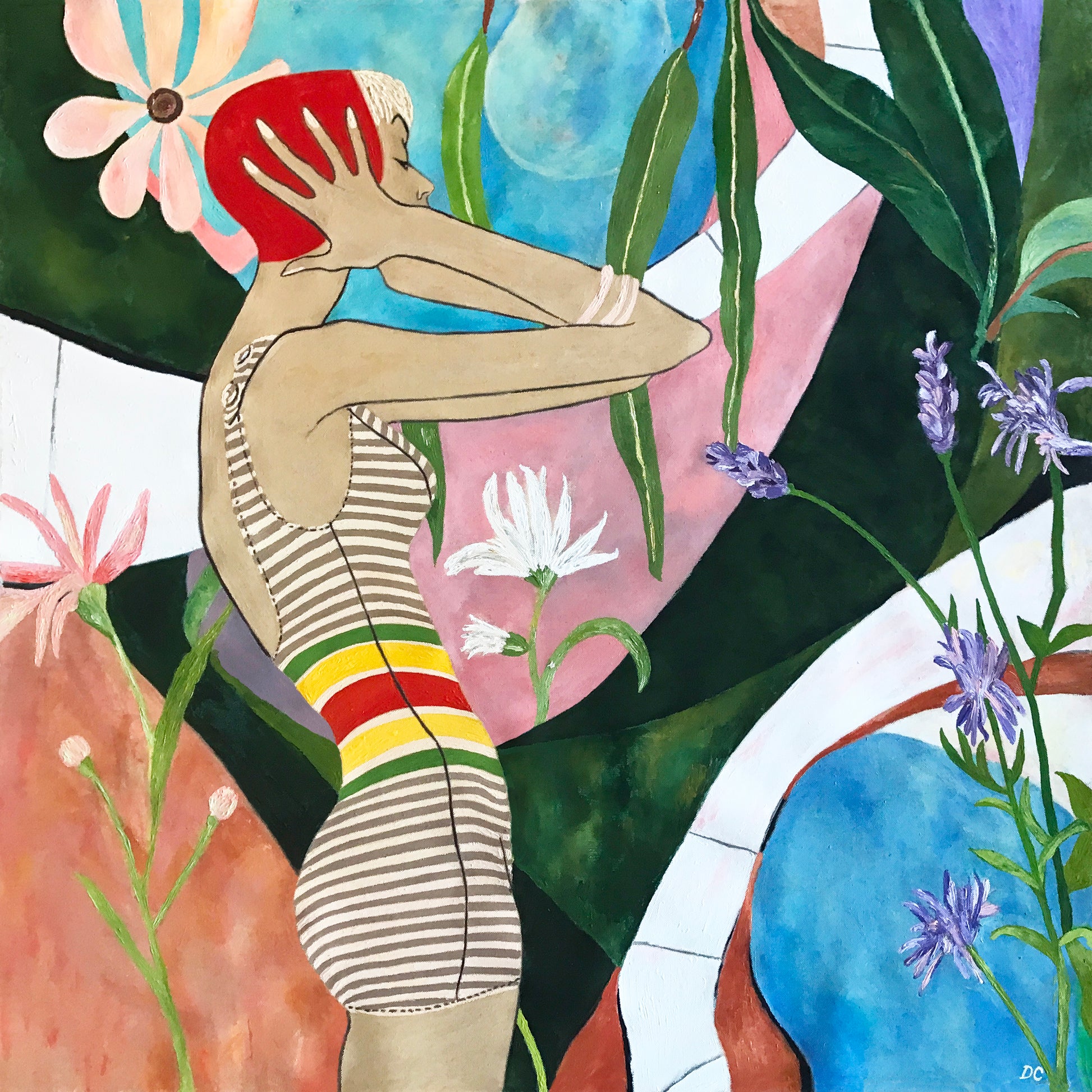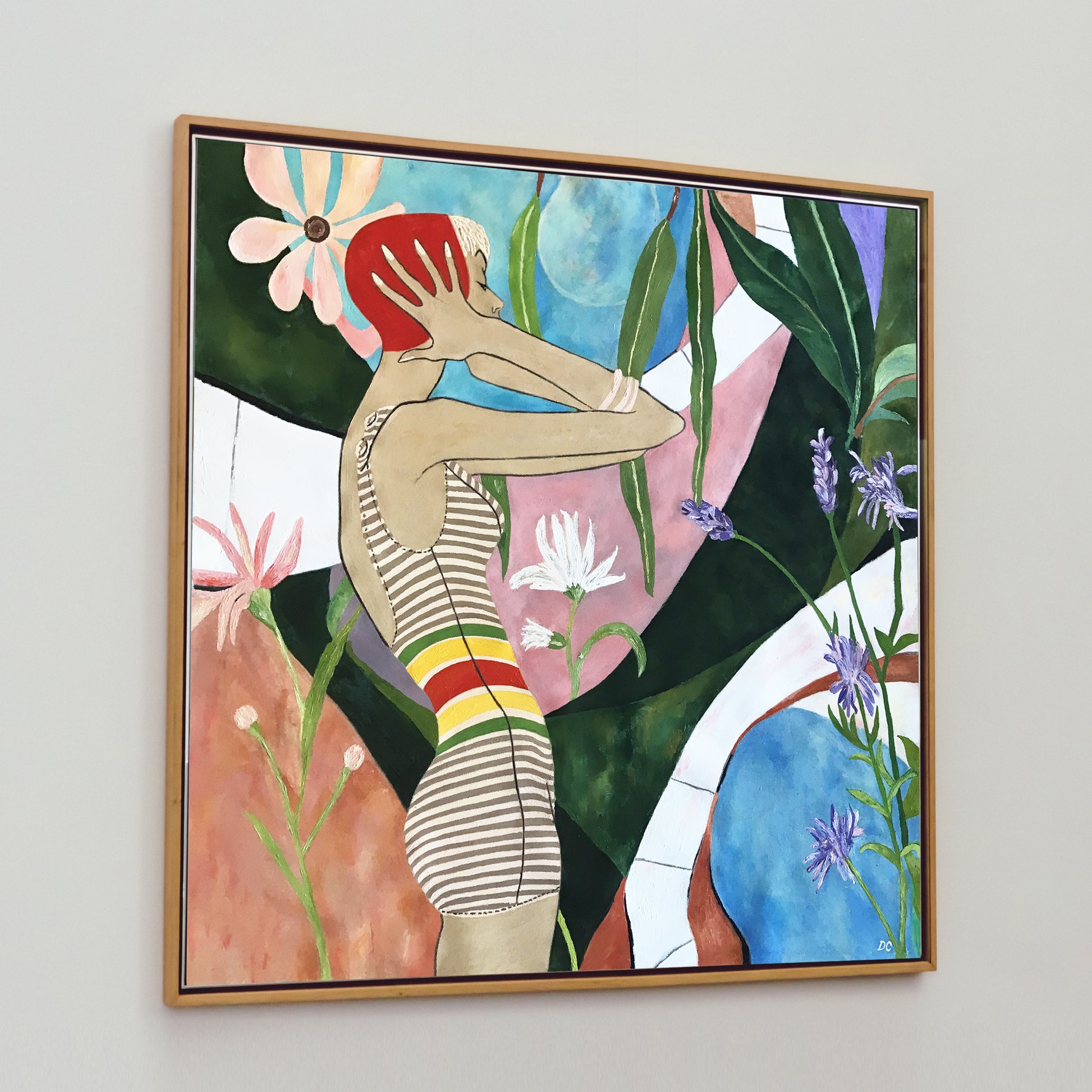 A celebration of summer's vitality "Summer Blooms", where nature blossoms in harmony with the female figure. The vibrant colors and delicate flowers evoke the warmth, freedom, and beauty of the season. Time seems suspended, wrapped in the gentle breeze of endless afternoons. A silent dialogue between body and nature, where life blooms with quiet intensity.