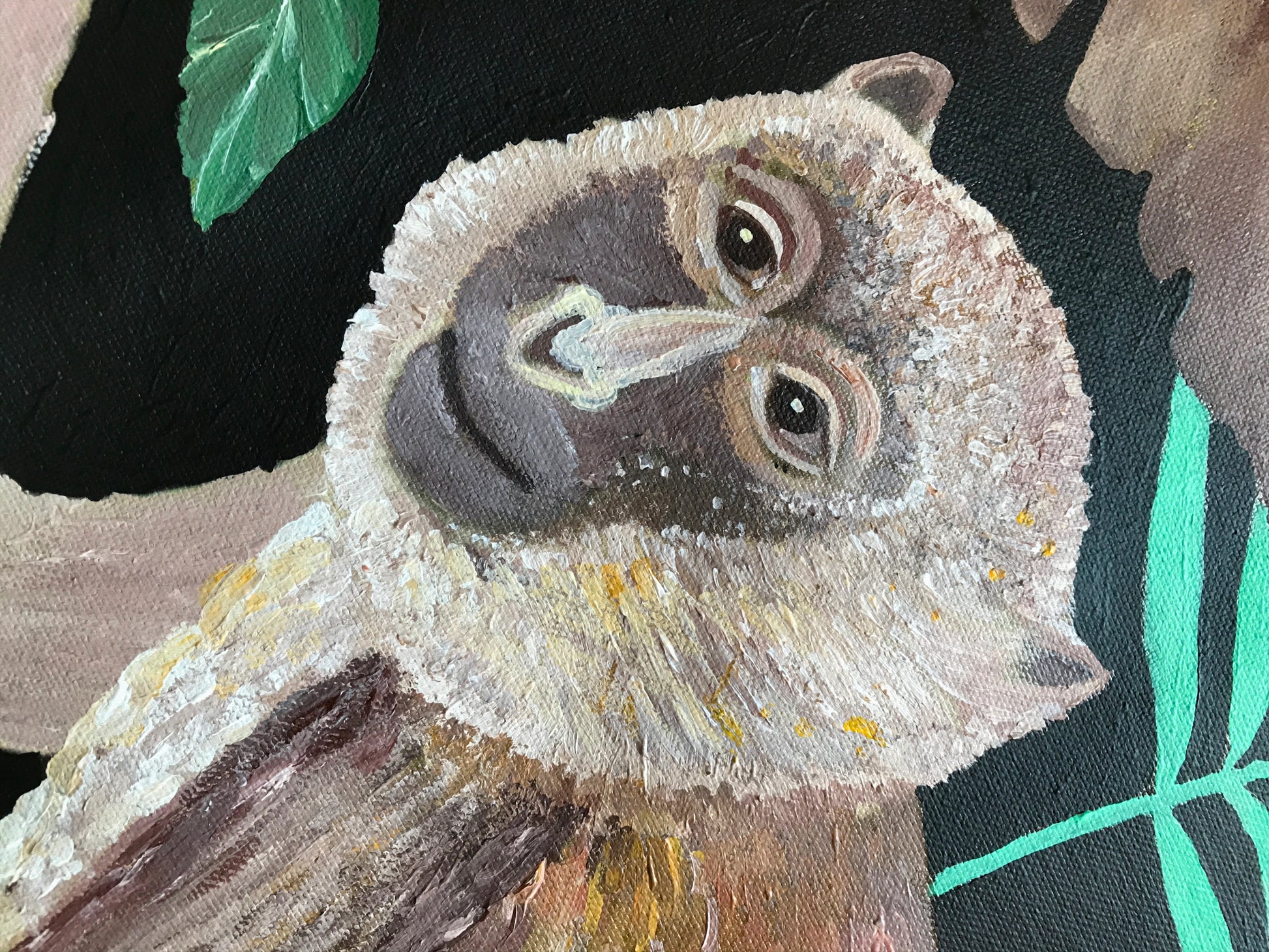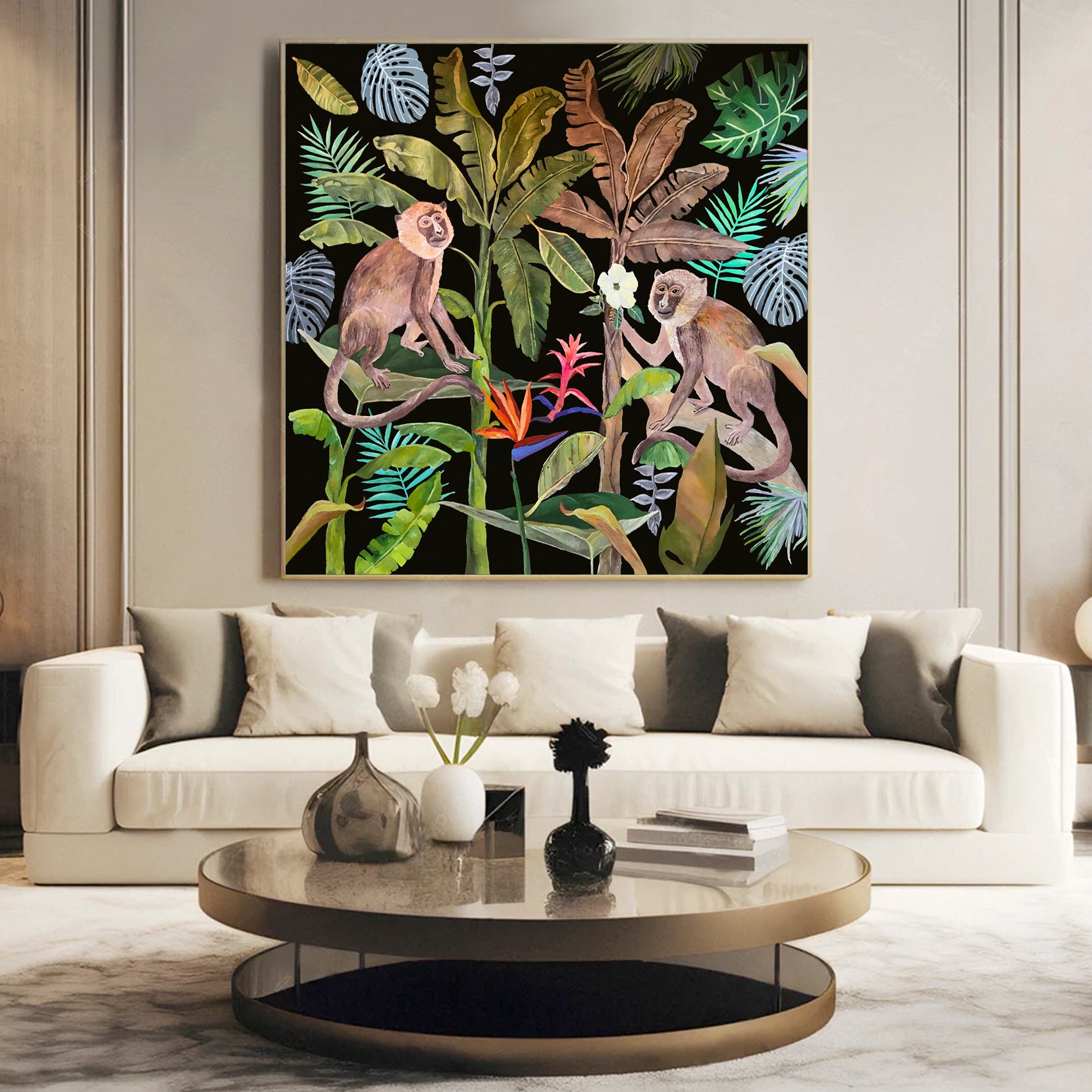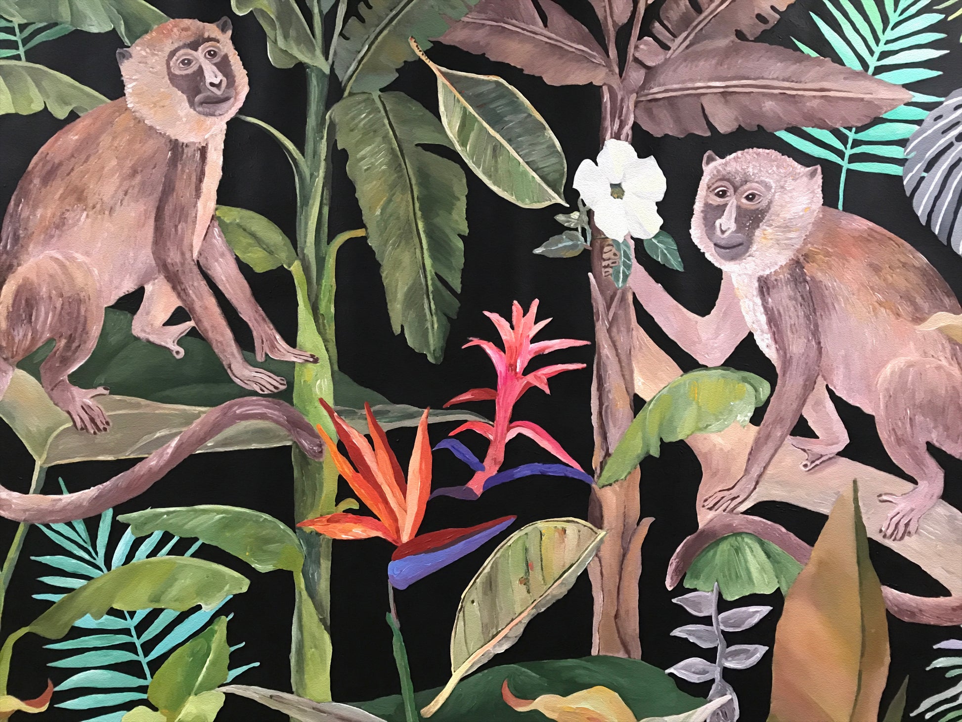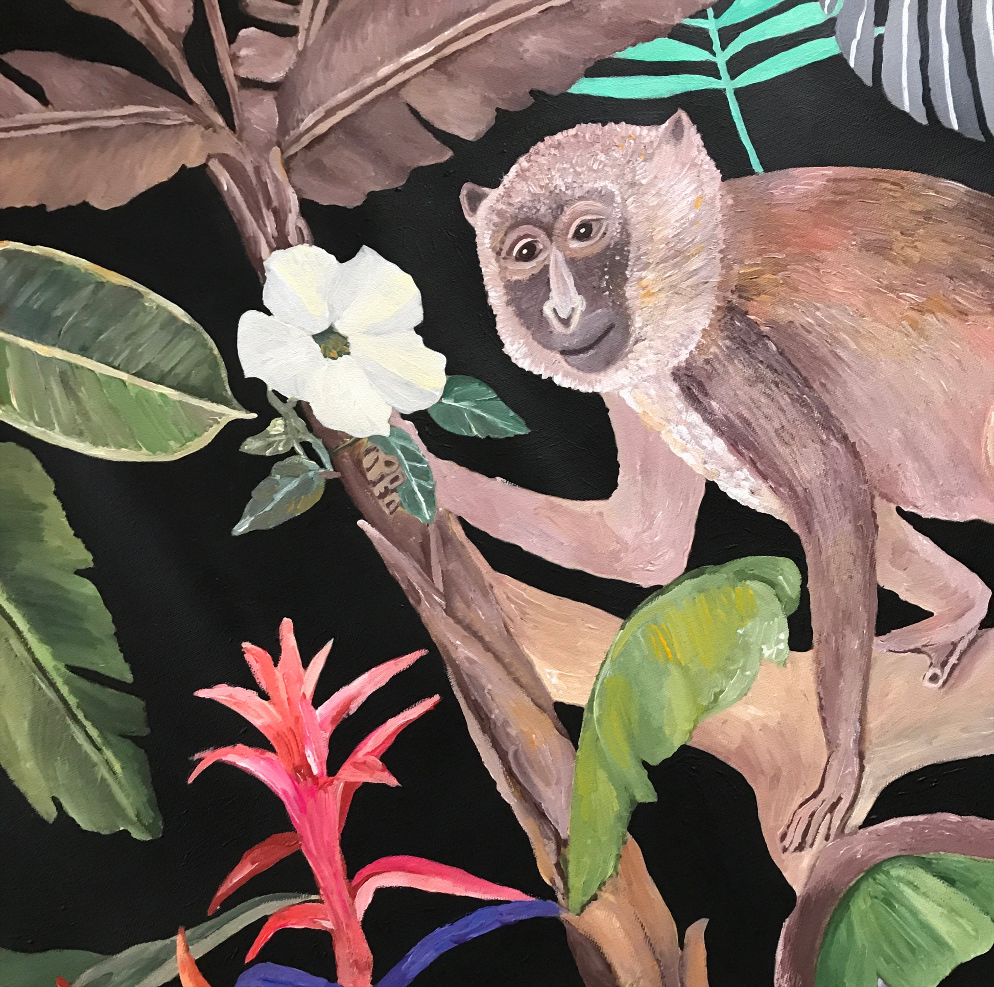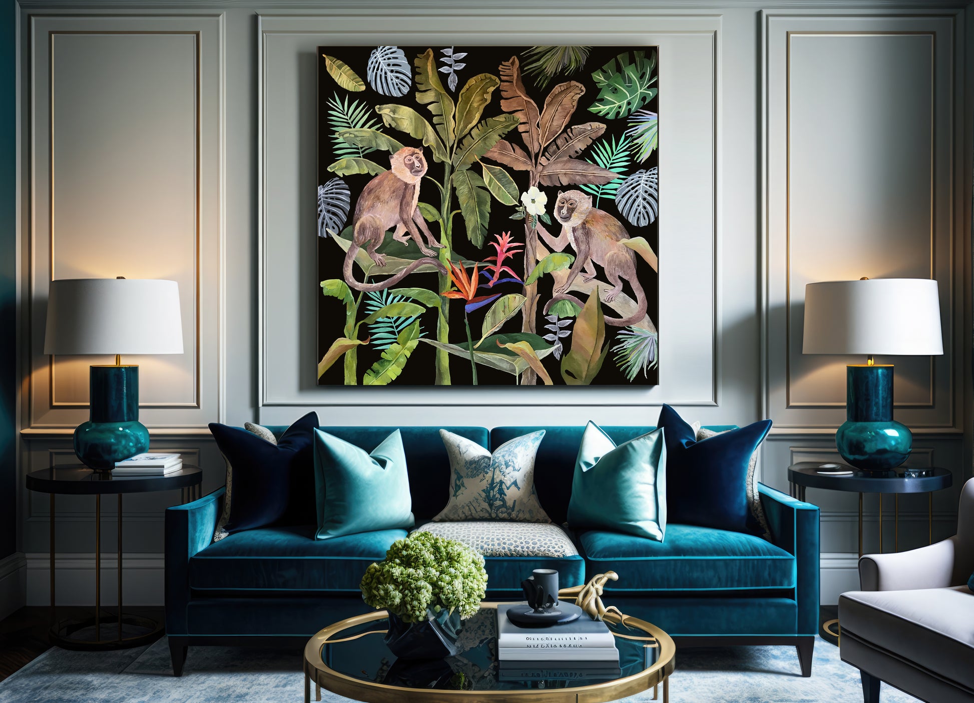 The Jungle have intrigued people for decades, offering a dream of escape from humdrum reality to a savage and yet enchanting realm. Meet the Lemurs of Madagascar. Art-Deco style, Nature inspired Tropical Feelings. Authentic piece, art tailored to bring Natural and Organic Elements